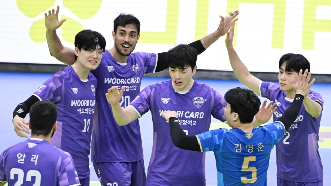 ▲ 프로배구 남자부 개막전에서 승리한 우리카드