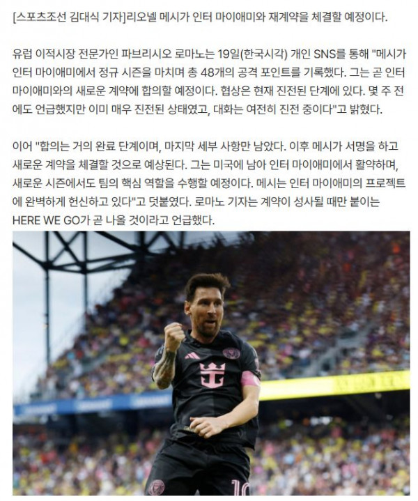 HERE WE GO 인증...'SONNY 덤벼!' 메시와 세기의 대결 시작, 인터 마이애미와 재계약 직전