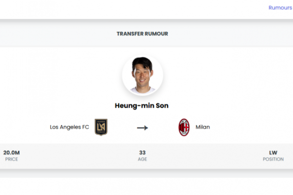 AC밀란 소식을 전문적으로 다루는 셈프레 밀란은 20일(한국시간) 이적시장 전문 매체 트랜스퍼 피드를 인용해 “AC밀란은 과거 데이비드 베컴을 단기 임대영입했을 때처럼 손흥민을 단기 임대영입할 수 있다”면서 “손흥민은 MLS 비시즌 기간 단기 임대이적을 통해 친정팀 토트넘 복귀나 AC밀란 혹은 대한민국 K리그에서 뛰는 방안을 고려하고 있다”고 보도했다.