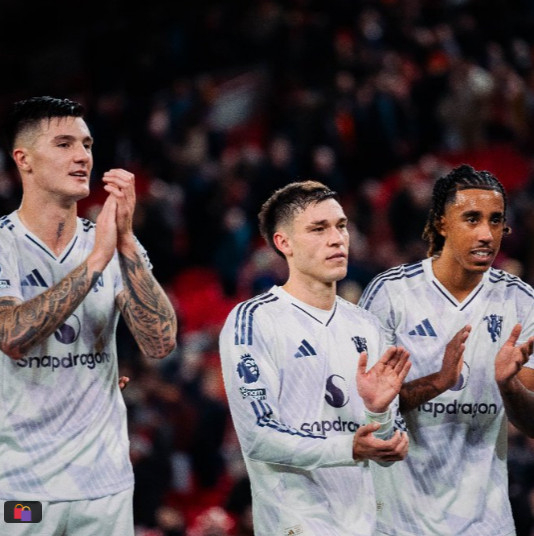 경기 후 팬들에게 박수를 보내는 맨유 선수들. /사진=맨유 공식 SNS 갈무리