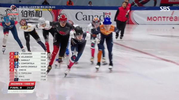 결승에 무려 9명이 출전한 1500 여자 숏트랙