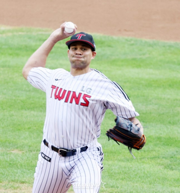 LG 외국인 투수 요니 치리노스(32)는 19일 이천 LG챔피언스파크에서 열린 한국시리즈 대비 청백전에서 주전으로 구성된 트윈스 팀의 선발 투수로 등판해 5이닝 동안 63구만 던져 1피안타 무사사구 3탈삼진 무실점 호투를 펼쳤다.
