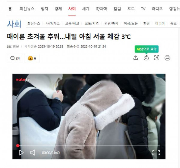 코트나 얇은 경량 패딩이 아니라 두꺼운 패딩을 꺼내야할 것 같은데요..?!