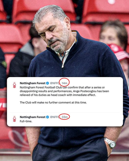 이로써 4연패에 빠진 노팅엄은 1승 2무 5패, 승점 5로 강등권인 18위까지 떨어졌다. 그러자 노팅엄 구단도 경기가 끝난 지 19분 만에 포스테코글루 감독 경질을 발표하는 결단을 내렸다. 에반겔로스 마리나키스 구단주가 종료 휘슬이 불리기도 전에 분노한 표정으로 자리를 뜨더니 그대로 공식 발표로 이어졌다.