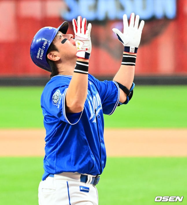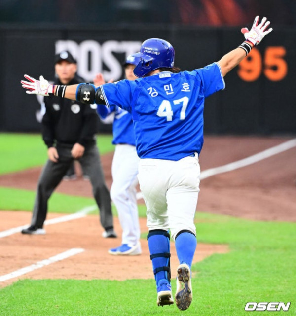 40대에도 여전히 뜨거운 방망이를 휘두르는 강민호. '나이는 숫자에 불과하다'는 걸 다시 한번 입증하는 순간이었다.