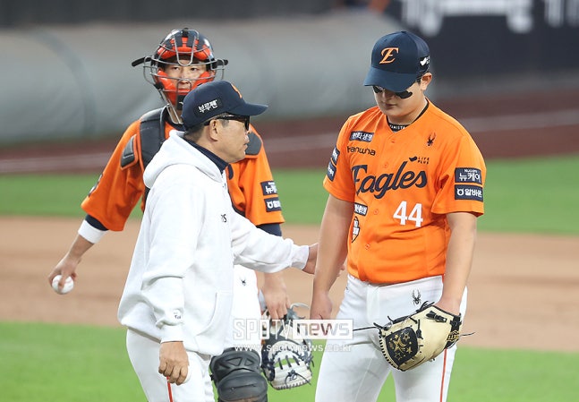 결국 김서현은 강판 당했고, 더그아웃에서 고개를 숙였다.