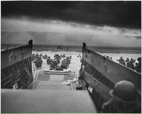 독일군의 맹렬한 기관총 사격 아래 연합군 병력이 상륙정으로 오마하 해변에 상륙하는 장면입니다. 사진은 미 육군 1보병사단 16보병연대 e중대 부대의 상륙 시작 순간을 포착한 것입니다. 이 상륙병들은 수송선 '새뮤얼 체이스'에서 lcvp 상륙정을 이용해 상륙했습니다. 사진의 원제는 '죽음의 턱'(the jaws of death)입니다.
