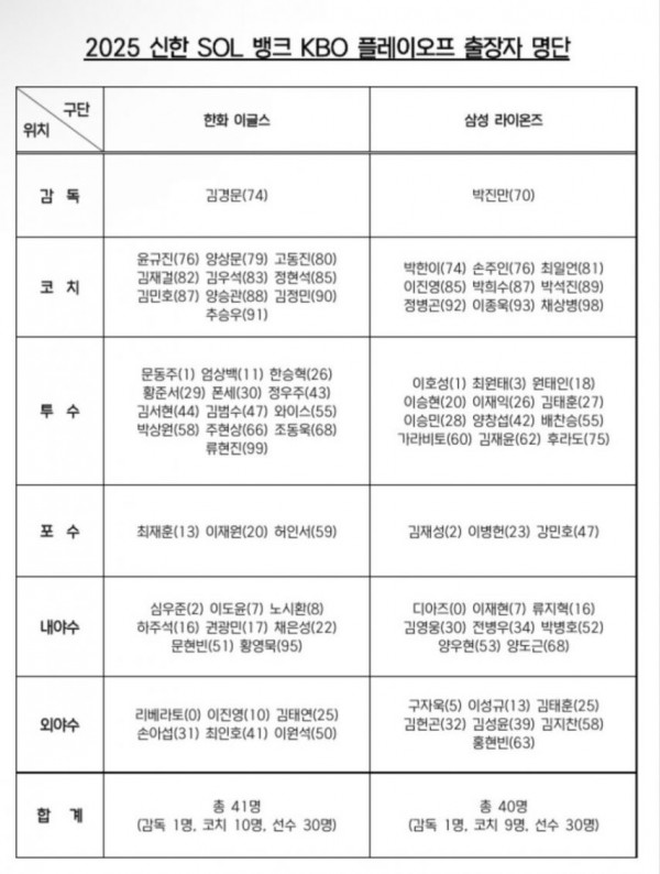 한화는 시즌 잘해준 김종수를 제외했군요