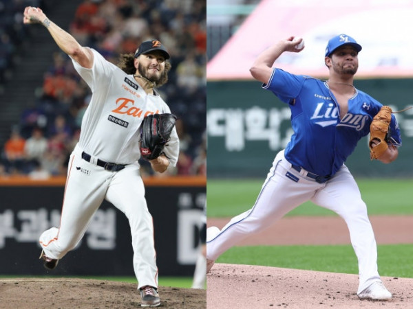 ![]() 한화 이글스와 삼성 라이온즈가 플레이오프 1차전 선발로 각각 코디 폰세와 헤르손 가리보를 예고했다. 사진은 한화에서 활약 중인 폰세(왼쪽)와 가라비토의 모습. /사진=뉴스1 |