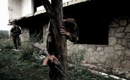 파괴된 집 옆에 있는 보스니아 병사. 이곳에서 69명이 사망했으며, 그 중에는 그의 가족도 포함되어 있다. 유고슬라비아 전쟁, 1995년.