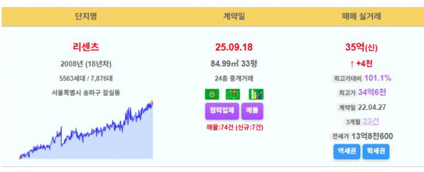 송파구 올림픽선수기자촌3단지 51평 36.5억 신고가