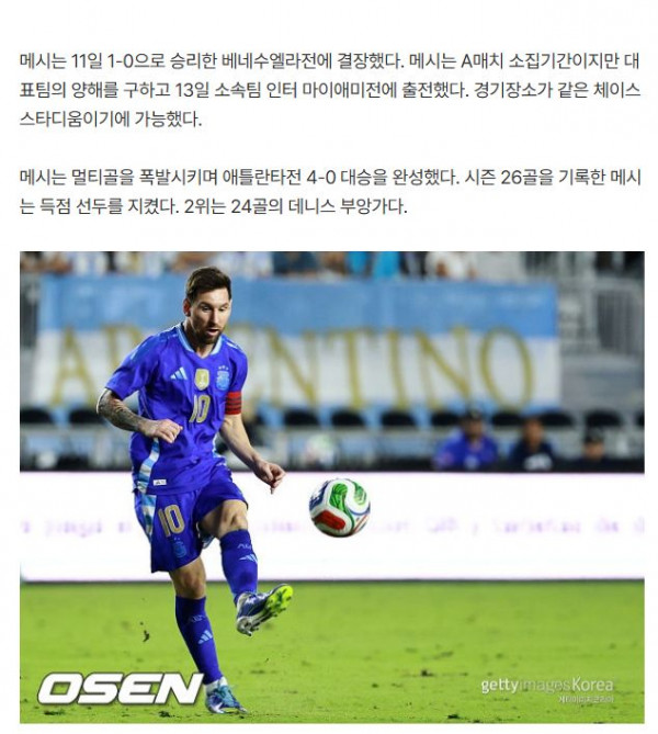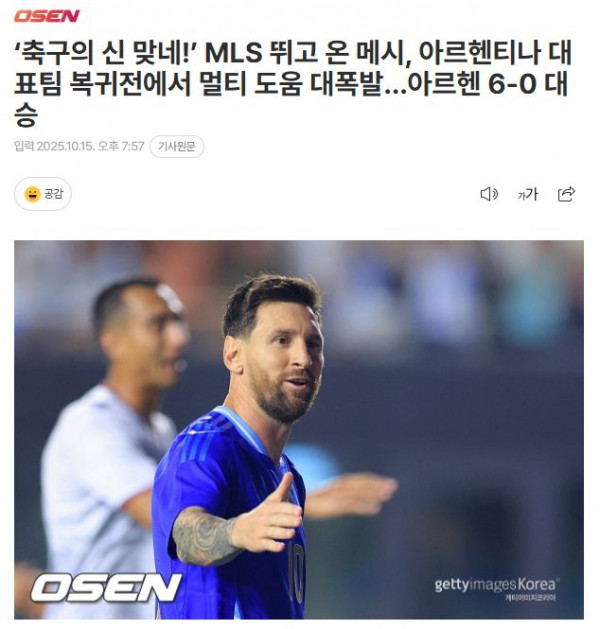 ‘축구의 신 맞네!’ MLS 뛰고 온 메시, 아르헨티나 대표팀 복귀전에서 멀티 도움 대폭발…아르헨 6-0 대승