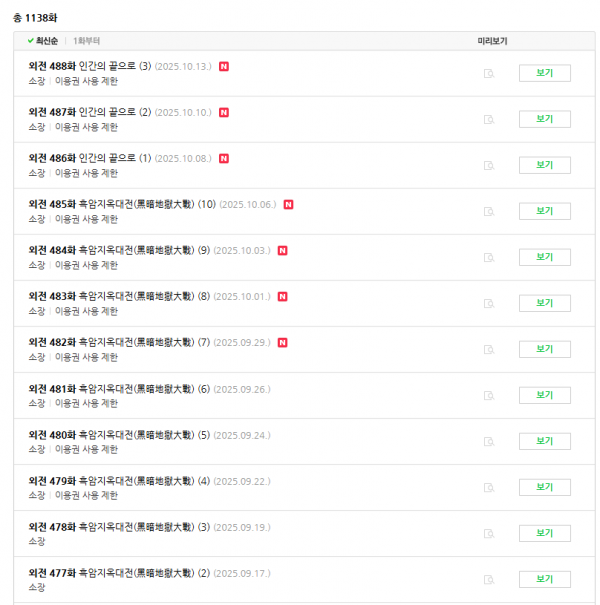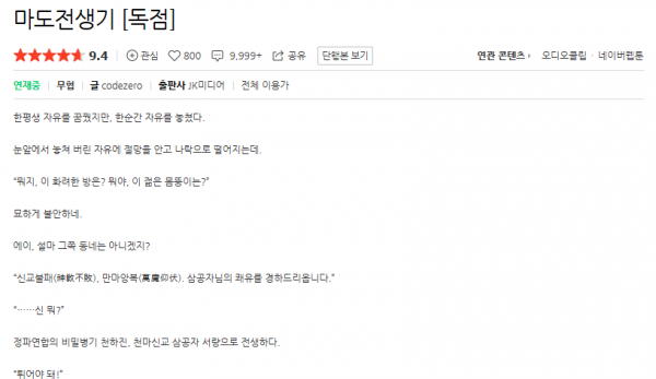 외전인데 본편만큼 나올 예정(본편 전대 교주 이천상의 이야기)