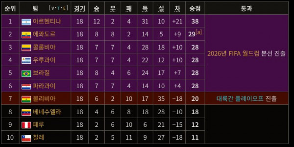 | 순위 | 팀 | 경기 | 승 | 무 | 패 | 승점 |