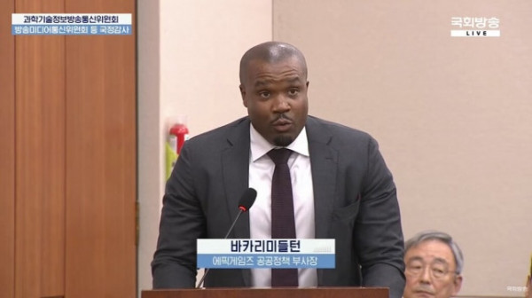미국에서 직접 날아와 참고인으로 출석한 바카리 미들턴 에픽게임즈 부사장은 자사가 애플·구글과 진행한 소송 결과를 상세히 증언하며 한국 상황에 대한 비판을 이어갔다.