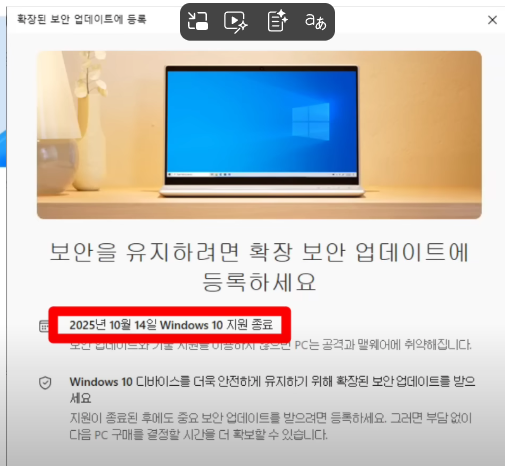 ms에 로그인 되있으면 이미지 처럼 해주면 내년 10월까지 연장 가능합니다.