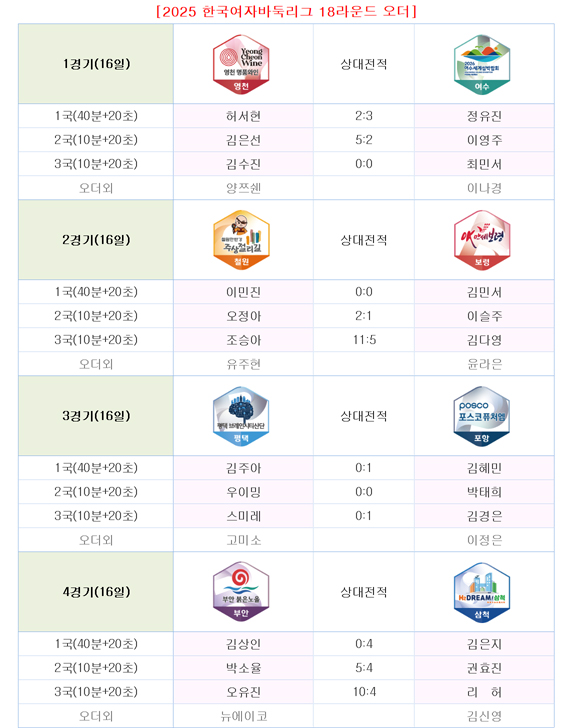 ■ 2025 여자바둑리그 통합 18라운드 오더