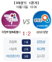 홈팀 GOGO양양, 의정부행복특별시에 2-1