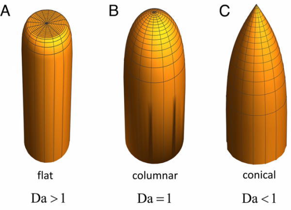 연구팀은 석순 형성 반응에서 담쾰러 수가 1보다 크면 윗부분이 평평하게, 담쾰러 수가 1이면 둥글게, 1보다 작으면 뾰족하게 될 것으로 예측했다. 하나의 변수만으로 석순의 모양을 예측한 것이다.