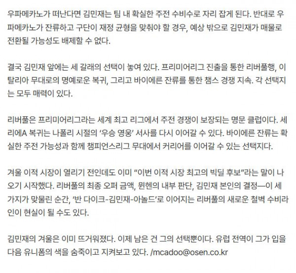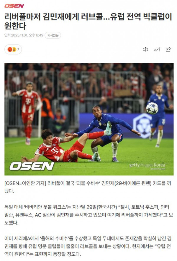 리버풀마저 김민재에게 러브콜...유럽 전역 빅클럽이 원한다