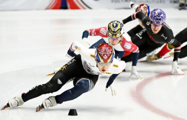 임종언이 12일(한국시간) 캐나다 퀘벡주 몬트리올 모리스 리처드 아레나에서 열린 2025~2026 국제빙상경기연맹(ISU) 쇼트트랙 월드투어 1차 대회 남자 1500m 결승에서 레이스를 펼치고 있다. 사진 | 몬트리올=AP연합뉴스 |