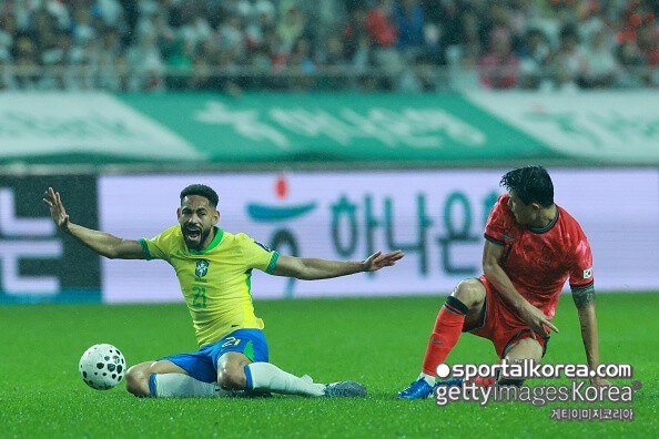 초반 김민재는 몇 차례 인상적인 수비를 보여줬다. 특히 전반 23분 브라질의 역습 상황에서 비니시우스 주니오르의 드리블을 태클로 끊어내기도 했다.
