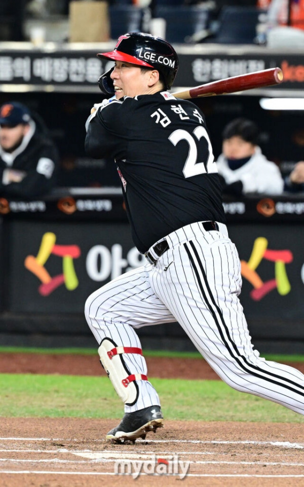 LG 트윈스의 심장, 정신적 지주 김현수(37)가 한국시리즈 MVP에 선정됐다. 김현수는 한국시리즈 5경기서 17타수 9안타 타율 0.529 1홈런 8타점 3득점으로 펄펄 날았다. 예전에는 가을만 되면 고개를 숙였는데, 이번엔 그렇지 않았다. 한국시리즈서 가장 뜨거운 타자였다.