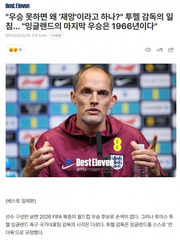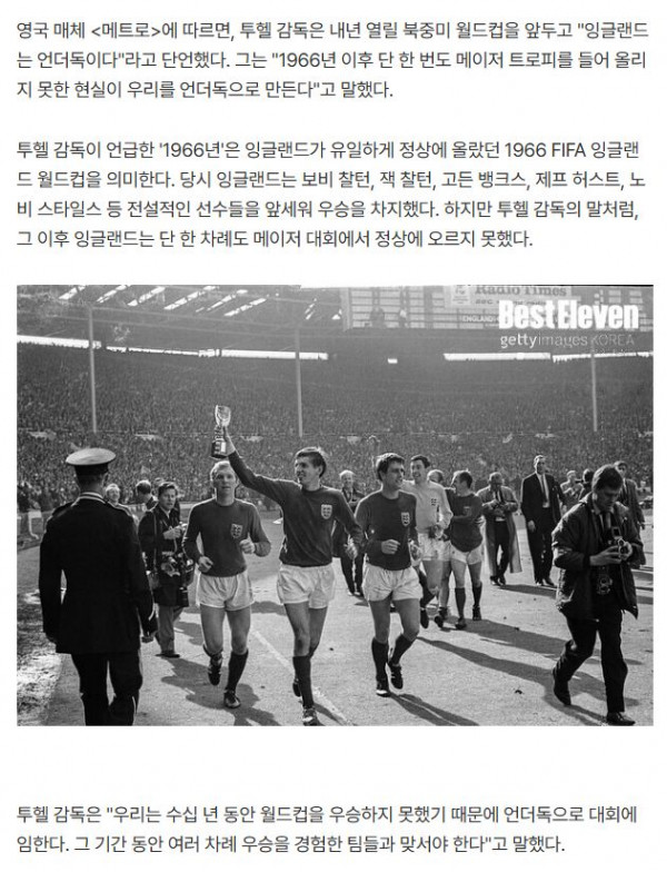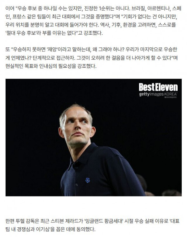 "우승 못하면 왜 '재앙'이라고 하나?" 투헬 감독의 일침… "잉글랜드의 마지막 우승은 1966년이다"