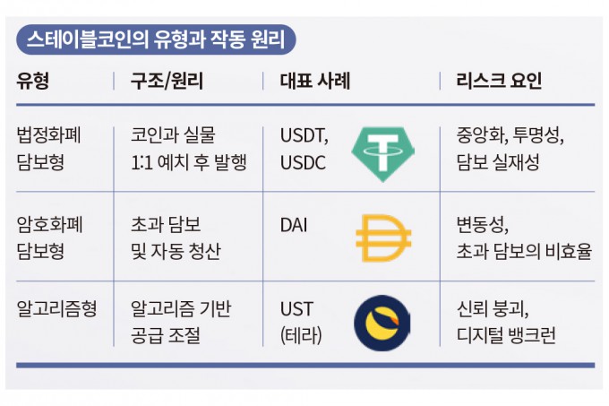 담보형 스테이블코인도 담보 자산의 가치가 흔들리면 큰 위기를 맞을 수 있습니다. 금융 위기 상황에서 담보 자산의 현금화가 어렵다는 인식이 확산하면 순식간에 디지털 뱅크런(온라인 자산의 대규모 동시 인출)이 일어날 수 있어요.