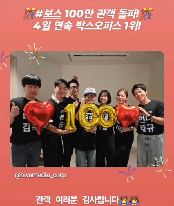 제작사 인스타에 올라온 100만 돌파 인증샷