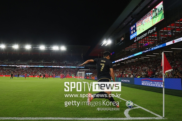 로스앤젤레스(LA)FC는 6일(한국시간) 미국 캘리포니아주 LA의 BMO스타디움에서 열린 2025 미국메이저리그사커(MLS) 정규 리그 경기에서 애틀랜타유나이티드를 상대한다. 전반전이 끝난 지금, 손흥민과 부앙가의 파괴력을 의식한 애틀랜타가 전반전 내내 라인을 낮게 내리며 수비에 집중했다. 이에 LAFC는 득점하는 데 애를 먹었다.