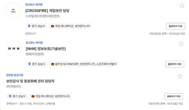 실제로 다른 직군들의 채용이 업계 한파로 인해 줄거나 동결되는 사례도 적잖게 있는 데 비해, 국내 주요 게임사들이 ‘게임 및 클라우드, 시스템 보안’과 관련한 채용을 적잖게 하고 있는 모습을 주요 채용 사이트에서 확인할 수 있다. 특히 해외 서비스 게임에서 암호화폐 등을 다루고 있는 기업들은 관련된 엔지니어 채용에도 눈을 더 크게 뜨고 있는 편이다.