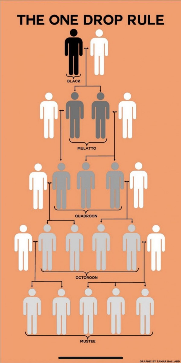 당시 미국에 존재하던 원 드랍 룰 때문에 흑인 피가 단 한 방울이라도 섞였으면 흑인으로 분류되었다고 함...