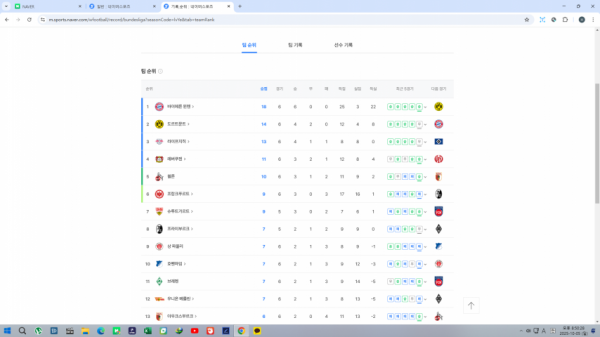 | 순위 | 팀 | 경기 | 승 | 무 | 패 | 승점 |