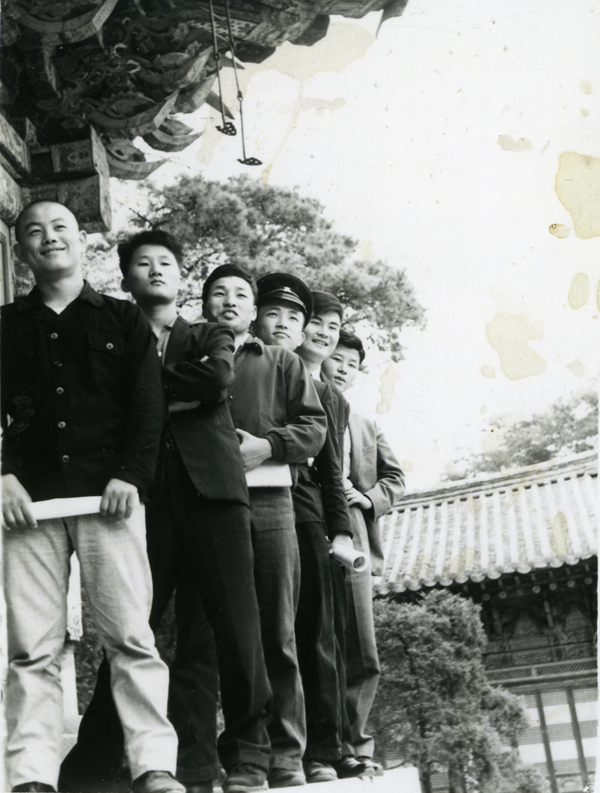 ▲ 조상연 七단이 청년시절 한국기원 소속 기사로 활약하던 때 동료 기사들과 한 사찰에 놀러가서 찍은 사진. 앞에서부터 청년시절의 김인, 조상연, 최창원, 윤기현, 김재구 프로가 보인다.
