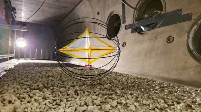 오르후스 대학에서 풍동 테스트를 진행 중인 소형 텀블위드 로버 시제품 중 하나 (출처=