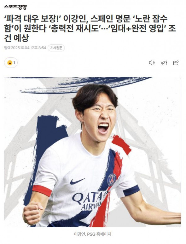 ‘파격 대우 보장!’ 이강인, 스페인 명문 ‘노란 잠수함’이 원한다 ‘총력전 재시도’···‘임대+완전 영입’ 조건 예상
