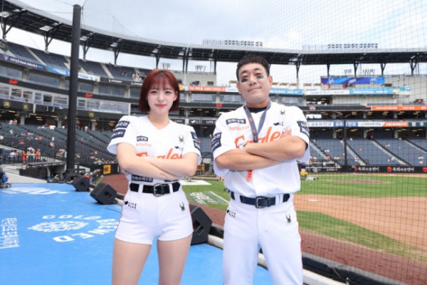 홍창화 단장과 하지원 치어리더(왼쪽). 사진=한화 이글스