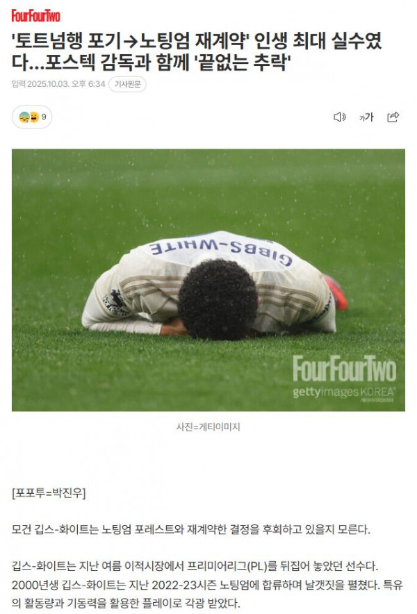 '토트넘행 포기→노팅엄 재계약' 인생 최대 실수였다…포스텍 감독과 함께 '끝없는 추락'