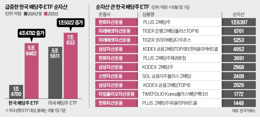 ‘배당주 투자는 미국’이라는 공식이 바뀌고 있다. 이재명 정부의 강력한 주주환원 정책으로 한국 배당주에 투자하는 상장지수펀드(