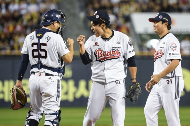두산 베어스 투수 최원준(가운데). /사진=두산 베어스 제공