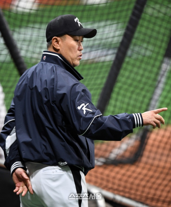 장종훈 팀코리아 코치가 16일 고척스카이돔에서 젊은 선수들 위주로 구성된 대표팀의 훈련을 지휘하고 있다. 팀코리아는 17일과 18일 MLB 샌디에이고 파드리스, LA다저스와 평가전을 갖는다. 사진 | 스포츠서울DB |