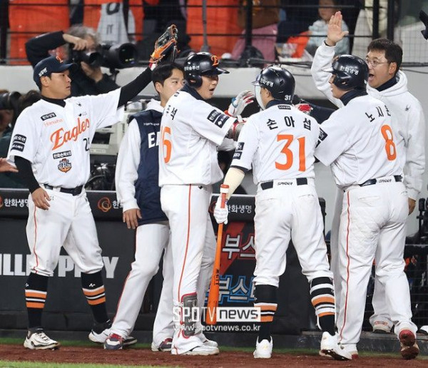 ▲ 득점에 기뻐하는 한화 선수들. ⓒ곽혜미 기자