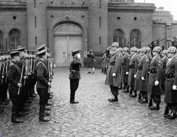 근무 교대_ 1950년 서베를린 슈판다우에 있는 전쟁 범죄자 감옥에서 소련 병사들이 미군으로 교체되고 있다.