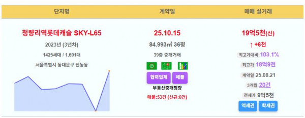 동대문 청량리역롯데캐슬SKY-L65 36평 19.5억 신고가