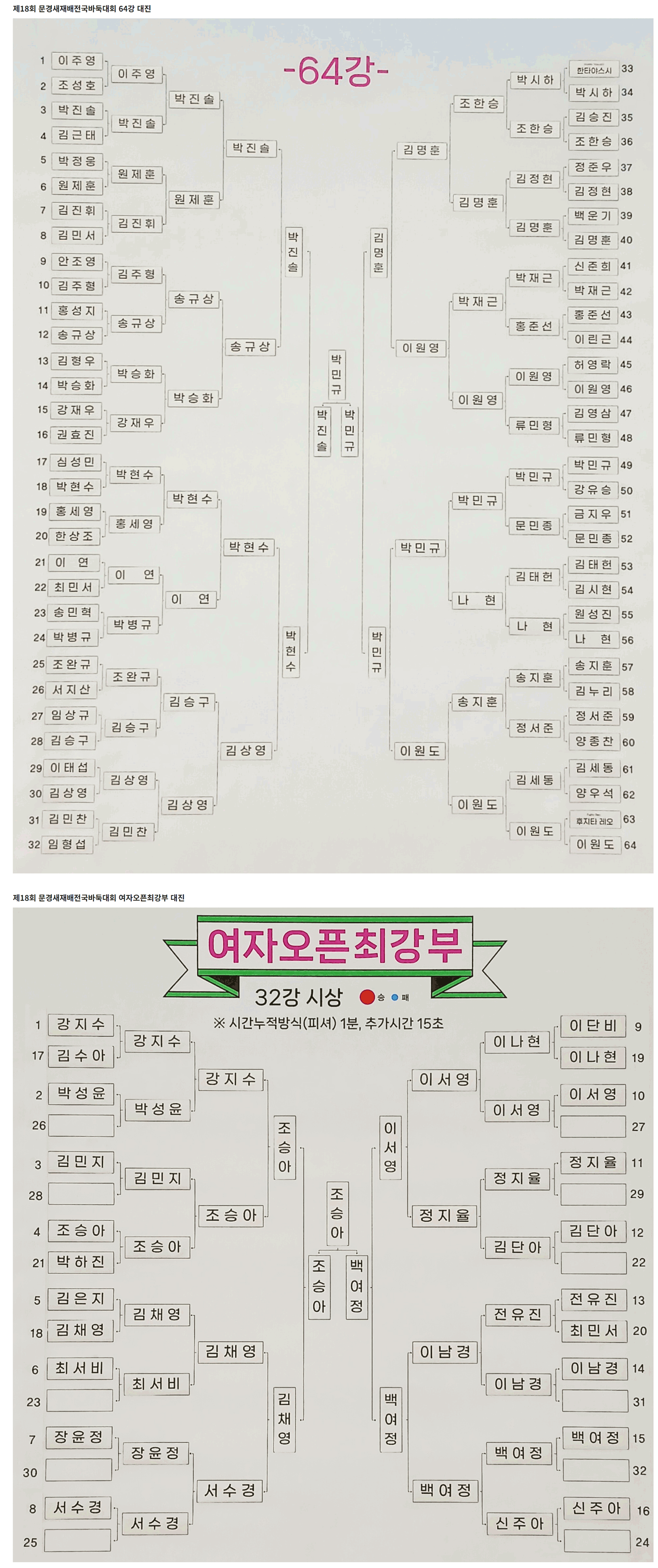 ☞ 문경새재배 오픈최강부 및 여성최강부 대진