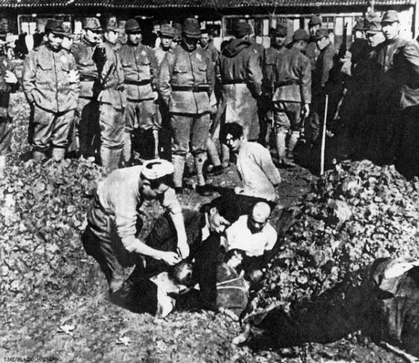 1938년 '난징 대학살' 동안 일본 군인들이 중국 포로들을 학대하는 모습입니다.