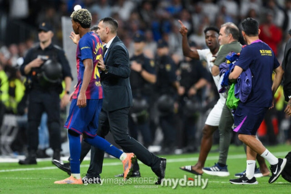 경기 종료 후에도 감정은 남았다. 레알 마드리드 베테랑 수비수 다니 카르바할은 야말을 향해 손가락으로 ‘입을 다물라’는 제스처를 취했고, 비니시우스도 역시 같은 행동을 반복하며 언쟁이 이어졌다. 결국 레알 마드리드 스태프가 나서 비니시우스를 제지했다.