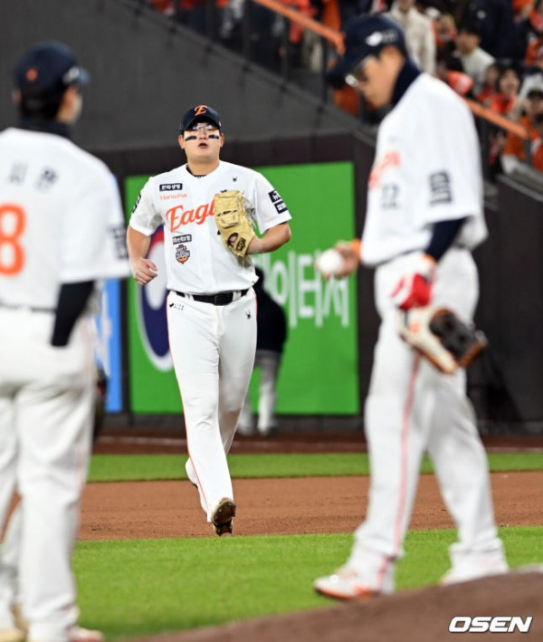 그에 앞서 3차전에서 문동주가 6회부터 9회까지 4이닝을 막고 1점 리드를 끝까지 지킨 경기가 있었다. 9회 세이브 상황에 투입되지 않은 게 마무리 김서현에겐 자존심 상하는 일. 그는 “굉장히 나가고 싶었지만 (문)동주 형이 저보다 페이스가 훨씬 좋았고, 공도 좋았다. 처음에 서운한 감정도 있었지만 동주 형한테 너무 미안했다. 내가 못 뛰었다는 (아쉬운) 표정으로 해서 동주 형 마음이 안 좋았을 텐데 제가 고마워해야 할 부분이다. 동주형이 잘 막아줘서 제가 다시 일어날 수 있는 기회가 생겼다”고 감사의 뜻을 표했다.