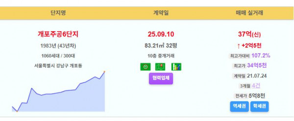 부천시 원미구 은하마을(동부) 37평 8.5억 신고가